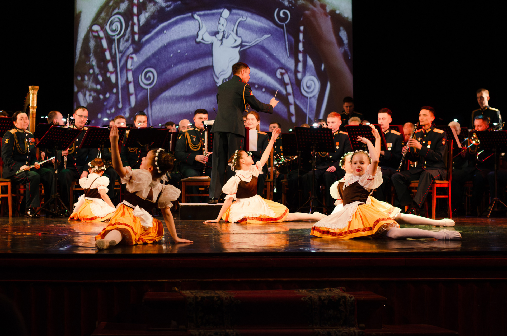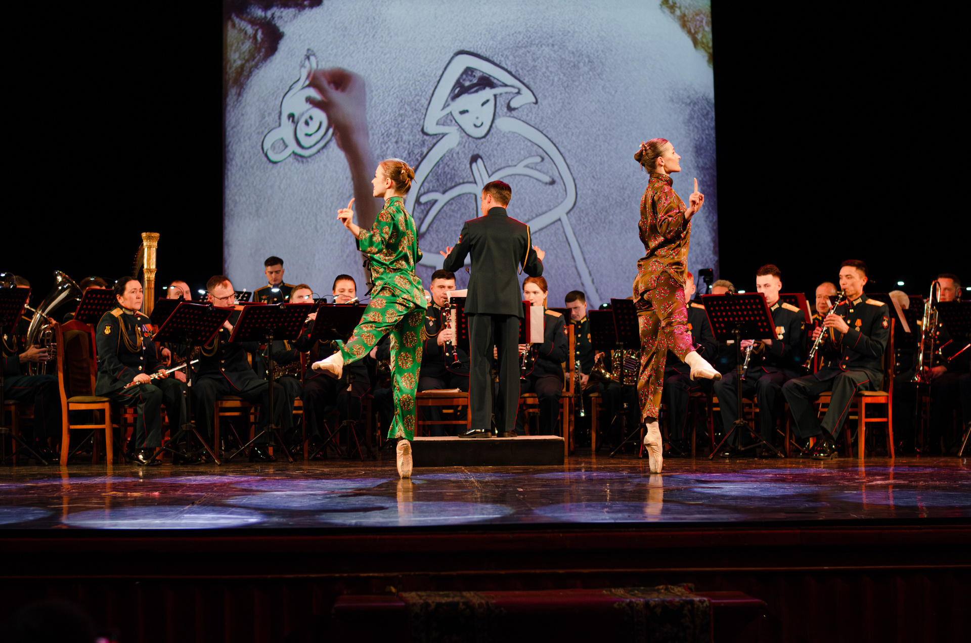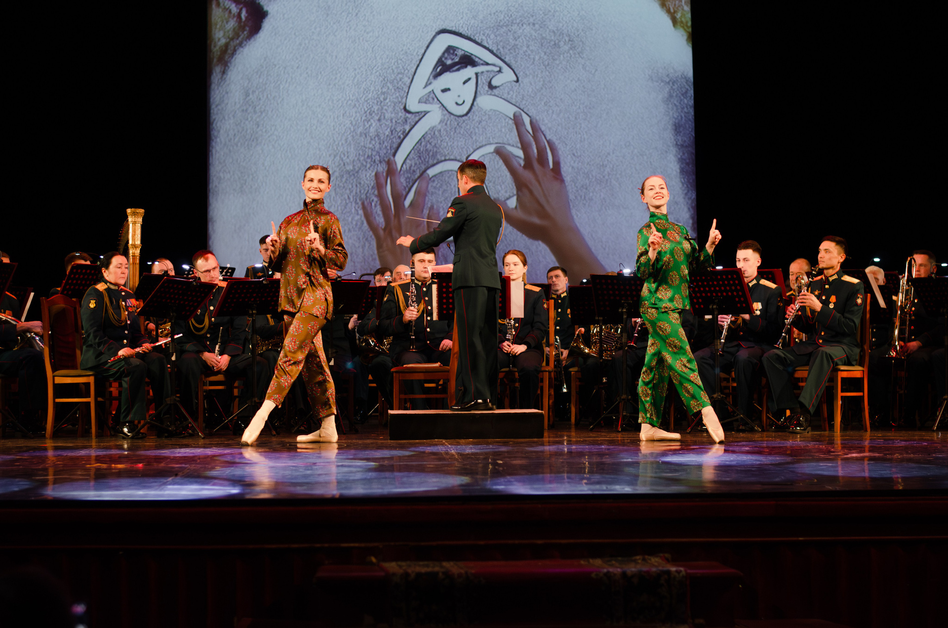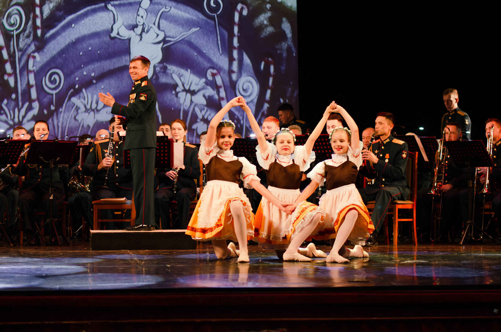 Оркестр военной академии МТО им. А. В. Хрулёва, хореографический коллектив «Русская Тройка», песочная анимация (концерт, гримерки, репетиция).