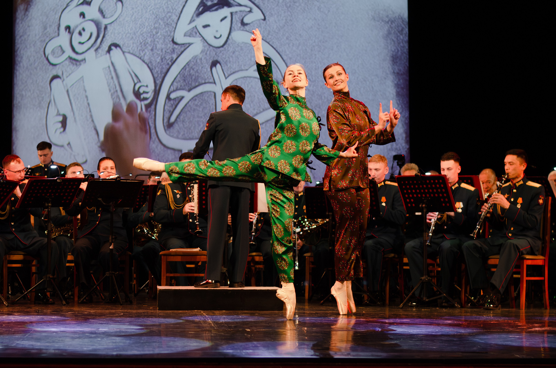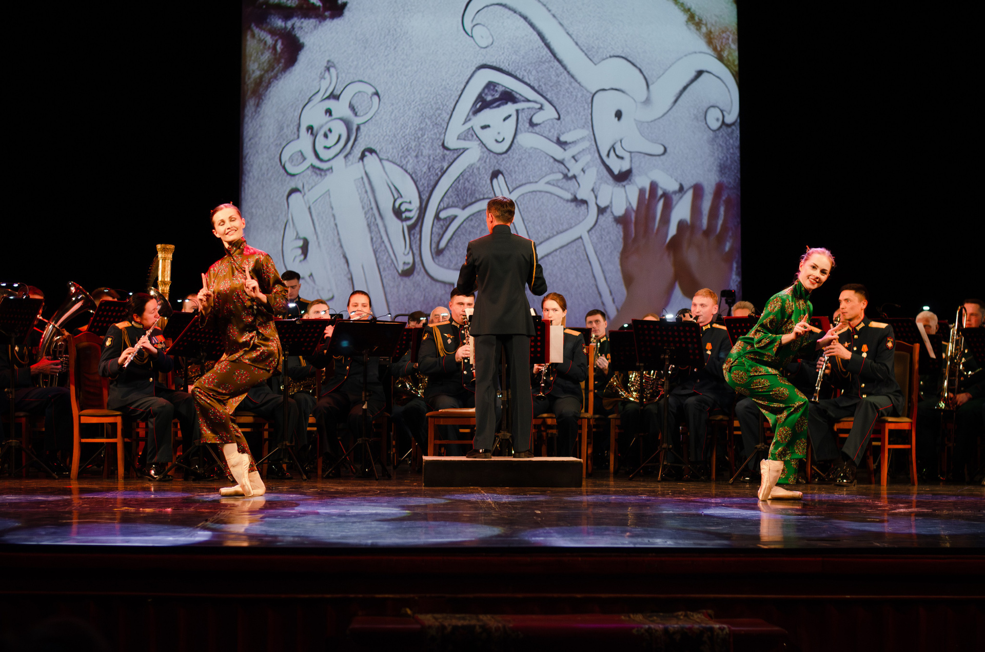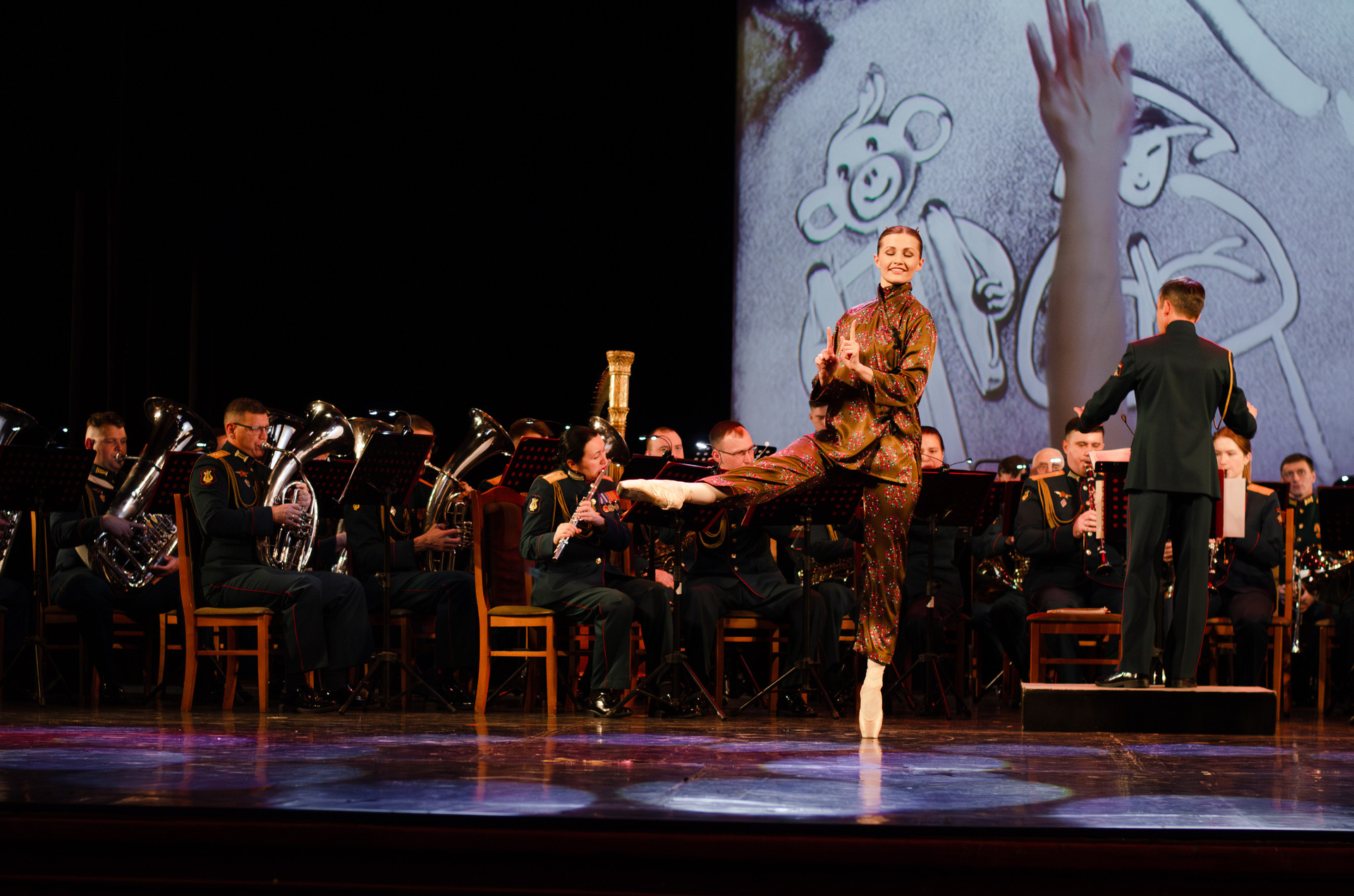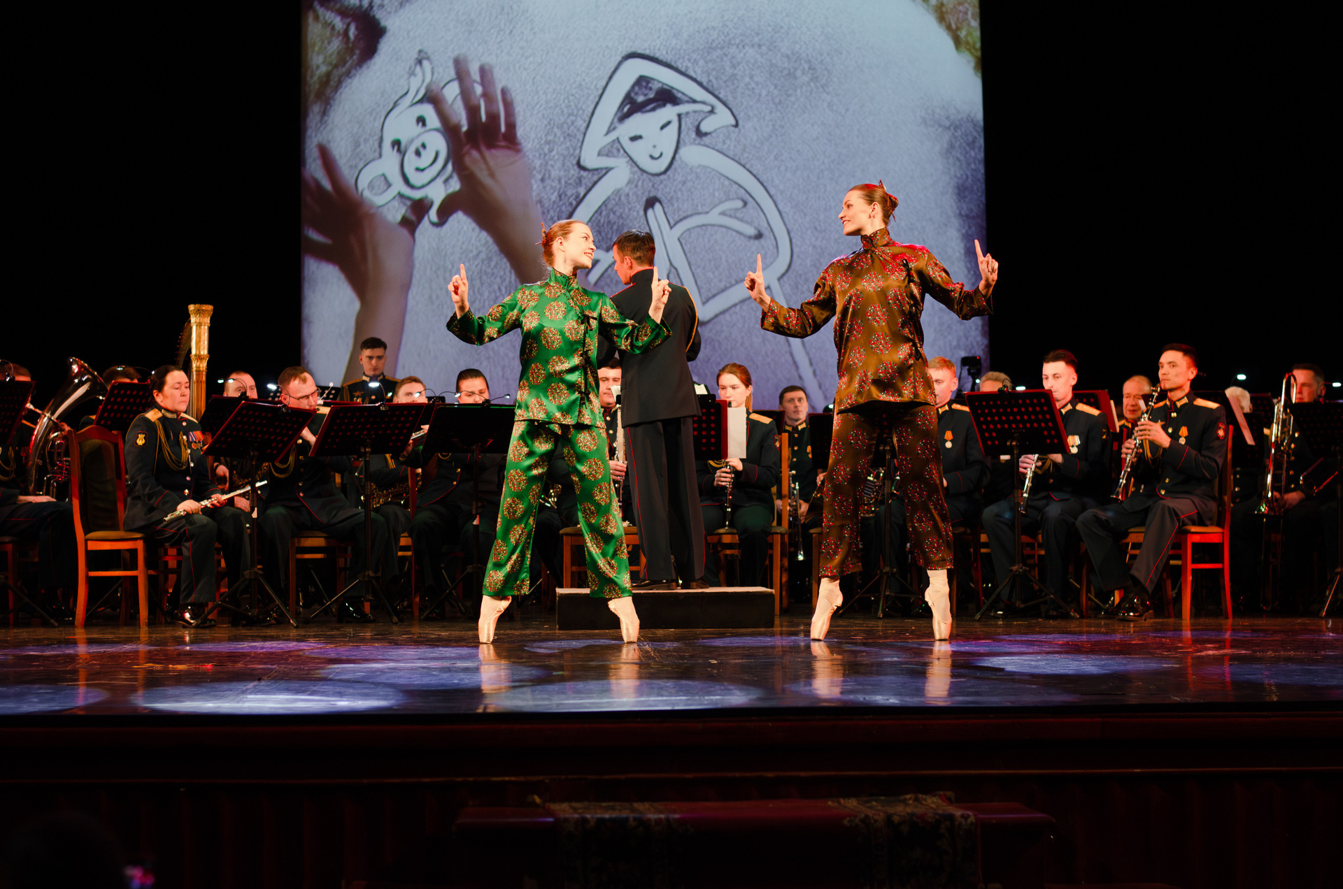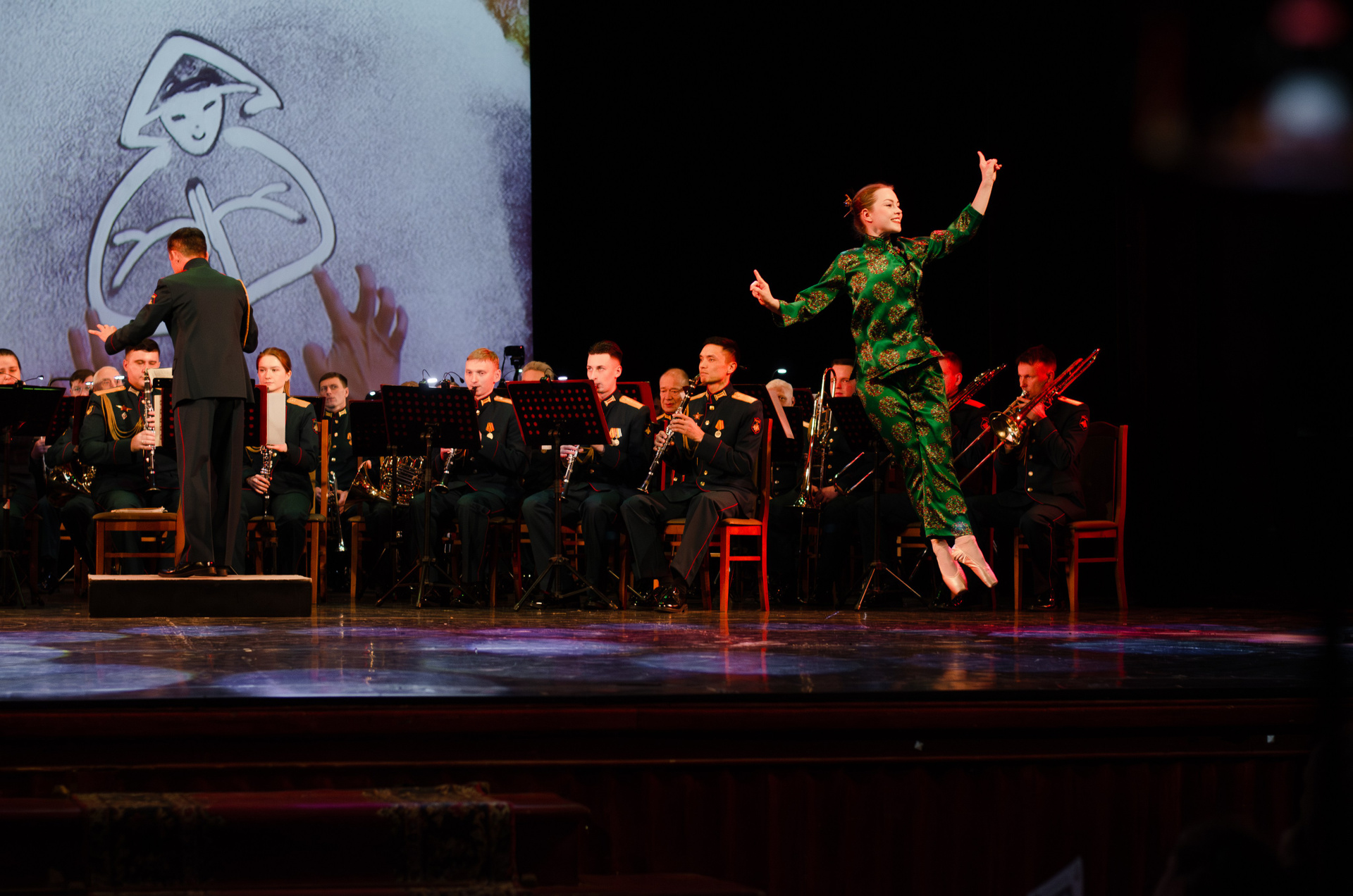 Оркестр военной академии МТО им. А. В. Хрулёва, хореографический коллектив «Русская Тройка», песочная анимация (концерт, гримерки, репетиция).