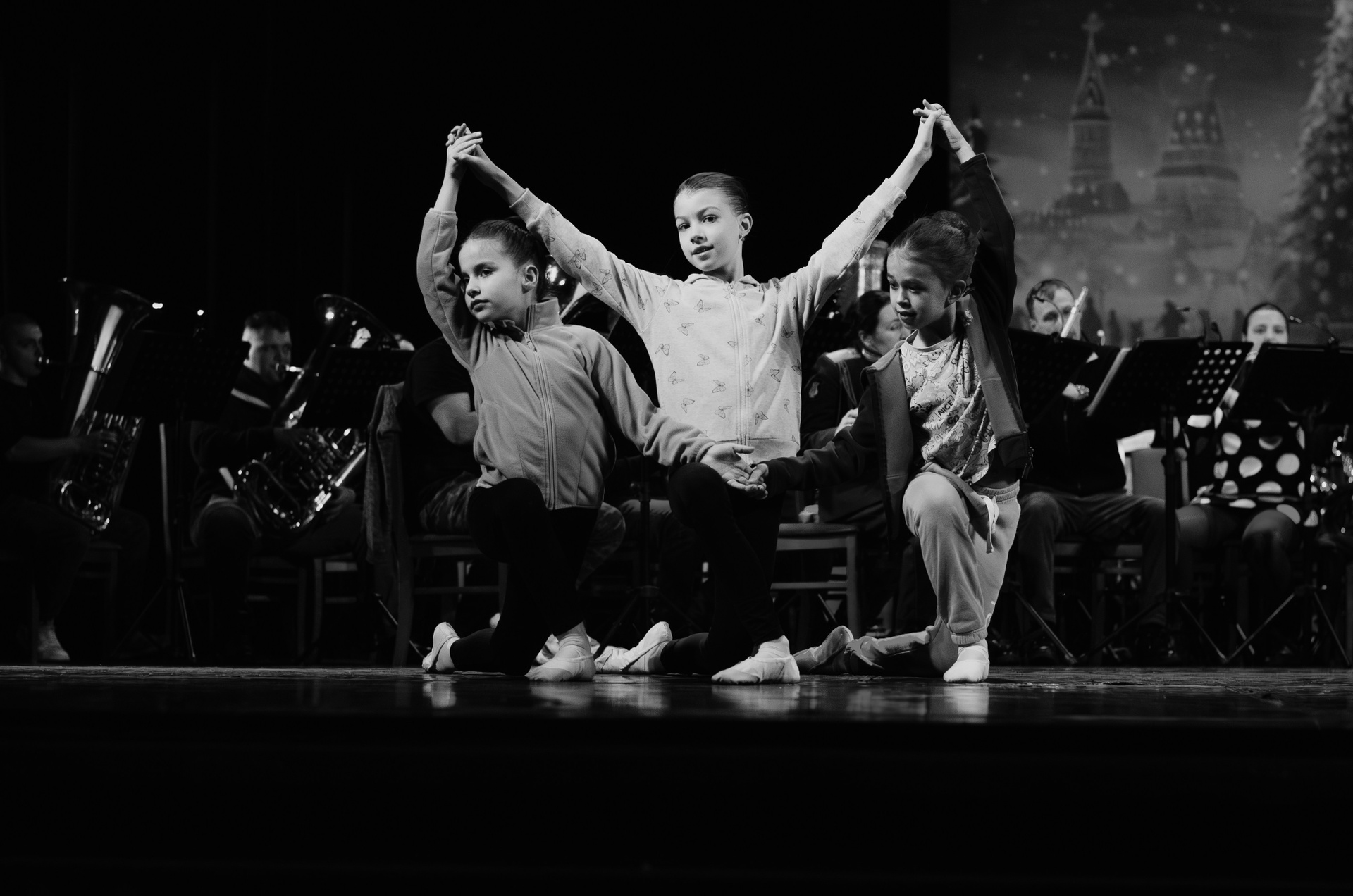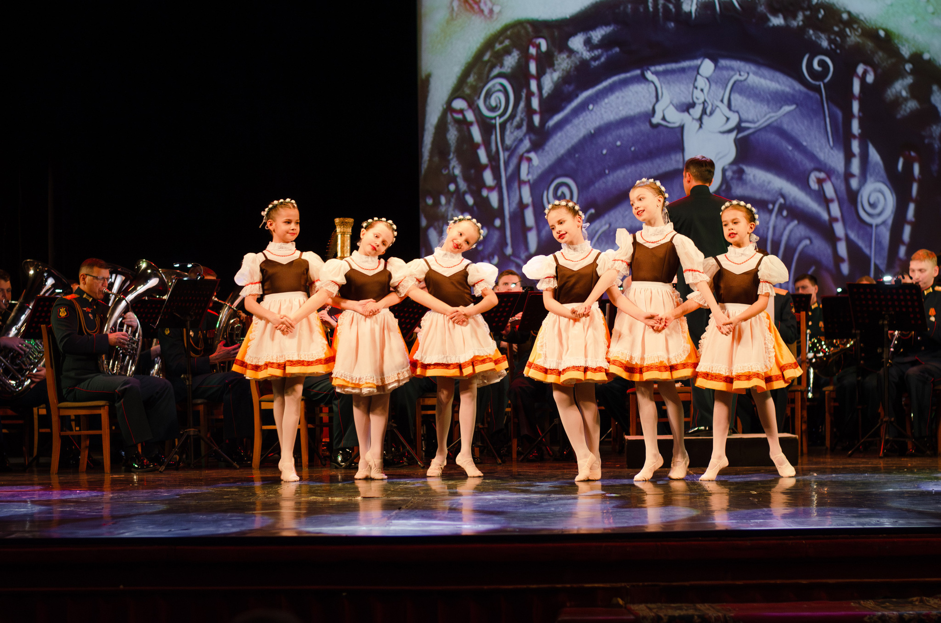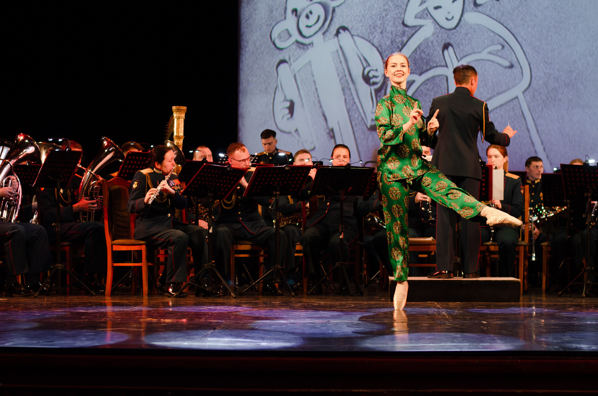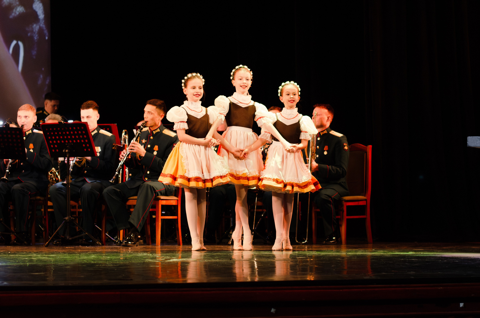Оркестр военной академии МТО им. А. В. Хрулёва, хореографический коллектив «Русская Тройка», песочная анимация (концерт, гримерки, репетиция).